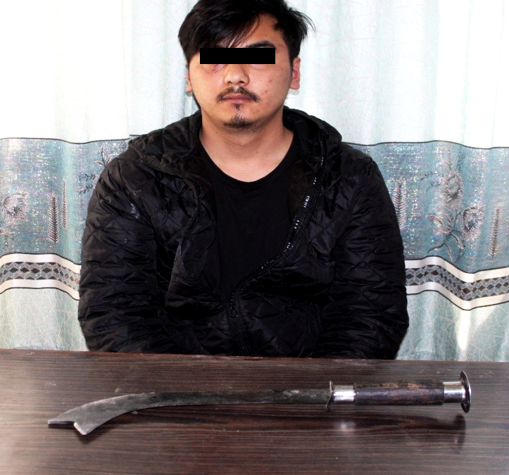 बस्ने बर्ष २२ को मनिष ठकुरीलाई धारिलो हतियार (खुँडा) सहित नियन्त्रणमा लिई